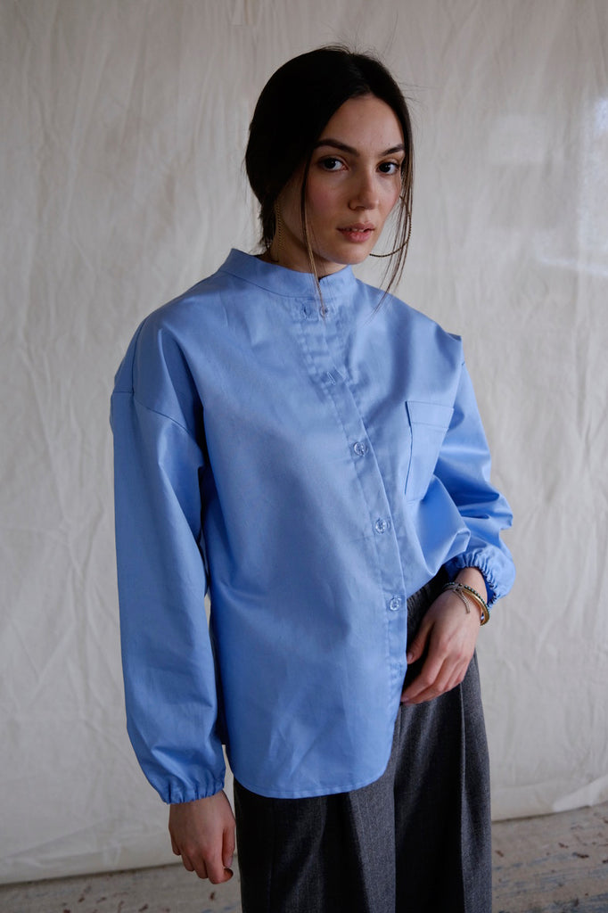 Inspired by clear horizons, the Travel Shirt in blue sky is your perfect companion for journeys near and far. Lightweight and breathable, it offers comfort without compromising on elegance. Style it with wide-leg trousers for a relaxed look or tuck it into a skirt for understated chic. Its fresh hue brightens every wardrobe, evoking a sense of ease and lightness.